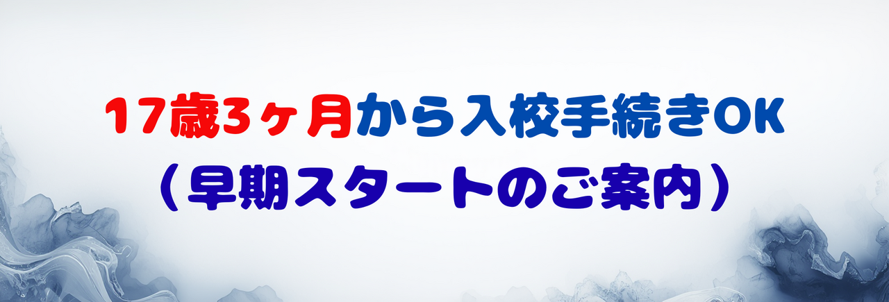 17歳3ヶ月から入校手続きOK(早期スタートのご案内)