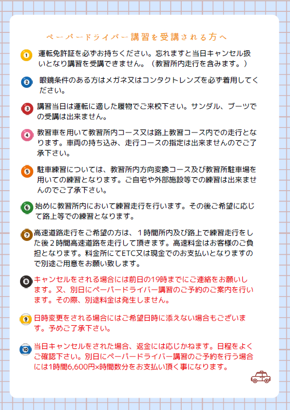 ペーパードライバー講習の受付を再開いたしました。